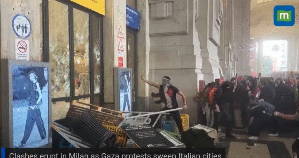 When terrorists were throwing garbage and stones on the police in Milan, Italy. In Islamic countries, they are called protestors for Palestine. Exremists are happy, shouting with joy, celebrating that they have control over the streets of Europe.